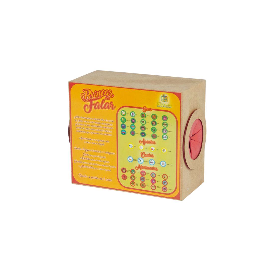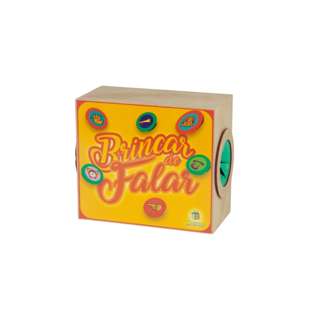O Brincar de Falar, da Materiais Para Brincar, é um kit de desenvolvimento de linguagem que transforma a terapia de fala em uma atividade lúdica e interativa. Pois o kit contém uma caixa em madeira com 42 fichas, divididas em categorias como nomeação de sons, imitação de gestos, apontar partes do rosto e cantar músicas.