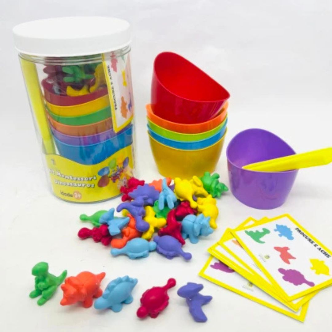 O Kit Montessori Dinossauros desenvolve a coordenação motora e o raciocínio. Ideal para crianças a partir de 3 anos. Compre na Materiais para Brincar!