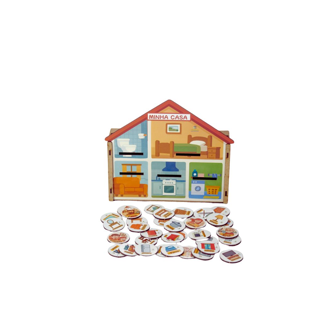 A Minha Casa é um brinquedo educativo e interativo que combina diversão e aprendizado. Feita em MDF, esta casinha foi projetada para que as crianças encaixem 35 fichas com móveis e pessoas em seus respectivos cômodos.