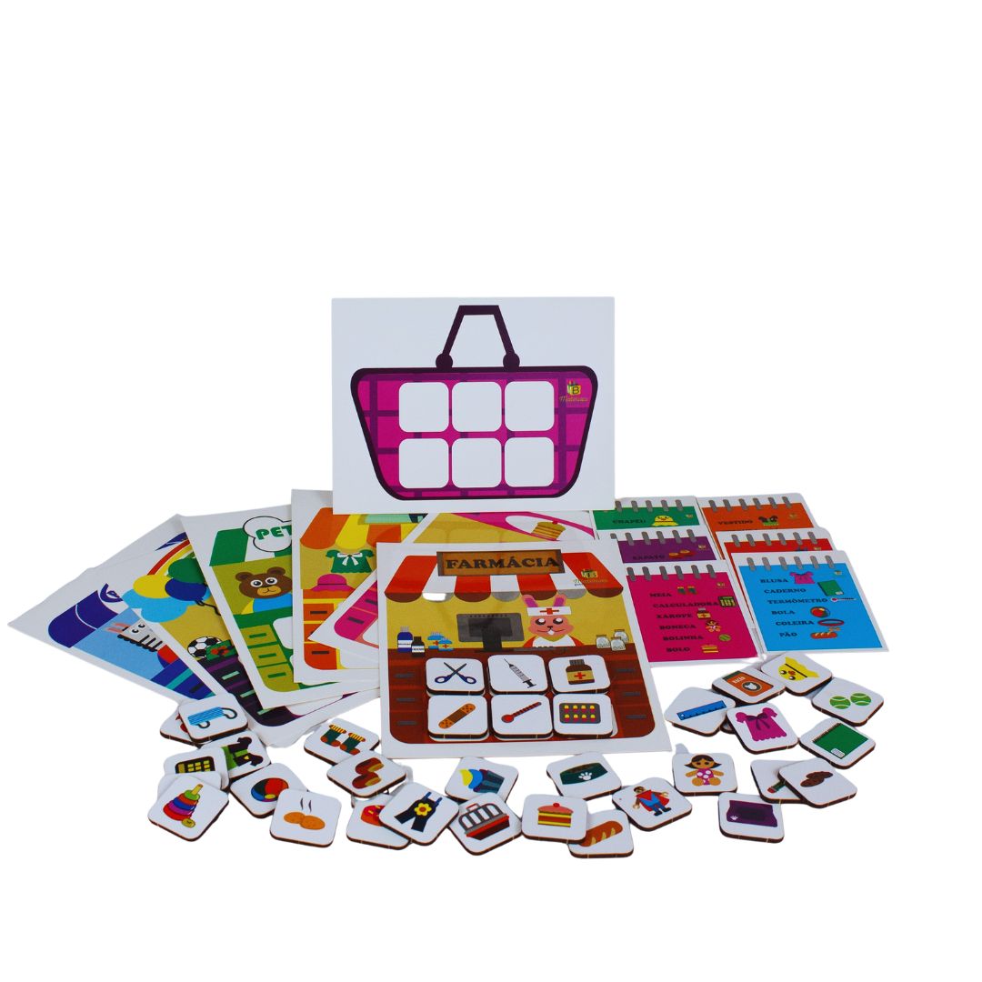 - Conteúdo Completo: Inclui 6 cenários de lojas, cesta, fichas e listas.